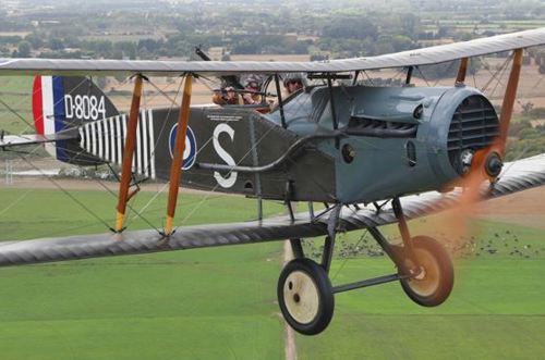 Over this period, he arranged about 160 meetings, two battlefield tours and organised commemorative events, at both home and abroad. These included an event, in conjunction with the Montrose Air Station Heritage Centre, to mark the departure of No.2 Squadron, Royal Flying Corps (RFC), who flew south to join the rest of the RFC on 3 August 1914, the day before war was declared. A highlight was the departure from the old Montrose airfield of a replica SE5 carrying a wreath to RAF Leuchars, from where it was transferred to London to join those representing all the units that crossed to France in August 1914. They were all then taken to France for the commemorative events ten days later at Amiens and Arras, organised by the late Lt. Col. Graham Parker, which Derek also attended and assisted with the arrival of a number of DeHavilland aircraft representing the BE2s that had arrived 100 years before.