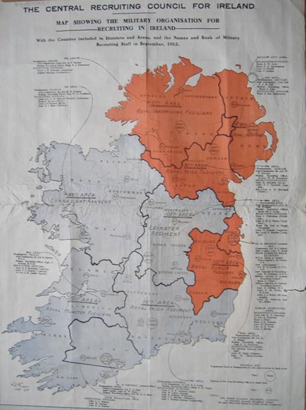 Above: Regimental recruiting map of Ireland, 1914 (image courtesy of the Museum of The Royal Irish Fusiliers)