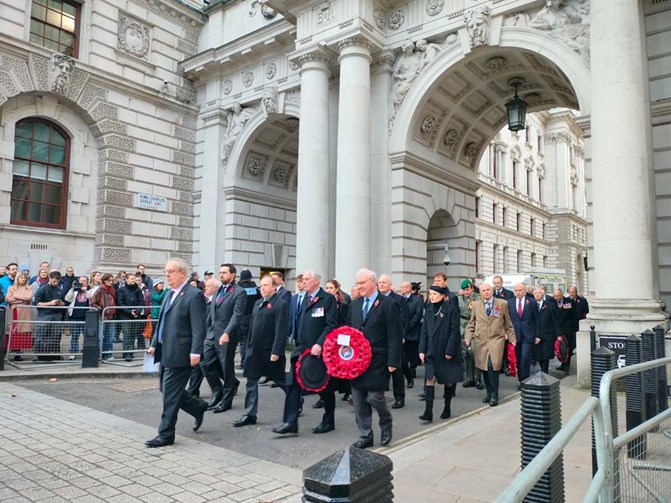 Above: Members and invited guests of The Western Front Association exiting King Charles Street at the start of the 2024 ceremony.