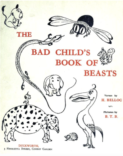 Lord Temple-Blackwood was well known as a book illustrator under the initials B.T.B. He illustrated The Bad Child's Book of Beasts, Together with More Beasts for Worse Children, Cautionary Tales and other volumes.