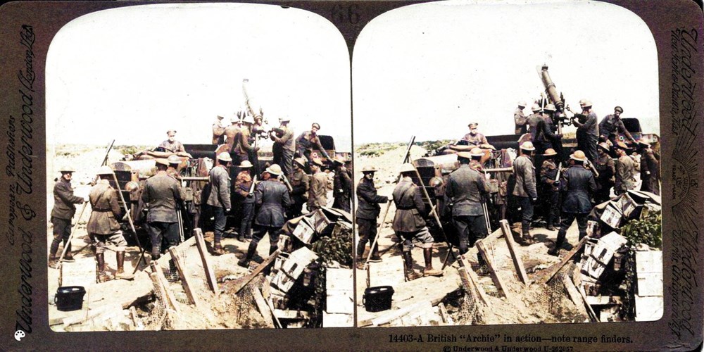 Image Id: 10 Contributor: The Jordan/Ference Collection Theatre: Western Front Subject: The Gun Line Location: Unknown Regiment: Unknown Service Arm: Anti-Aircraft Artillery Battle: Unknown Date: Unknown Combatants: British Publisher: Underwood & Underwood Source: British Directory: WOTNA
