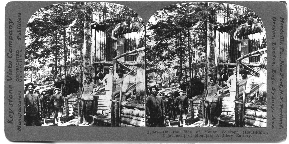 Image Id: 1011 Contributor: The Jordan/Ference Collection Theatre: Western Front Subject: Behind the Lines Location: Mt Volskopf, Haut-Rhin, Grand Est, France Regiment: Unknown Service Arm: Field Artillery Battle: Unknown Date: Unknown Combatants: Unknown Publisher: Keystone View Co Source: American Directory: 18600-18699
