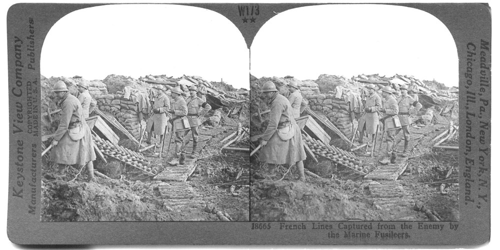 Image Id: 1029 Contributor: The Jordan/Ference Collection Theatre: Western Front Subject: The Front Line Location: France Regiment: Marine Fusileers Service Arm: Infantry Battle: Unknown Date: Unknown Combatants: French Publisher: Keystone View Co Source: American Directory: 18600-18699