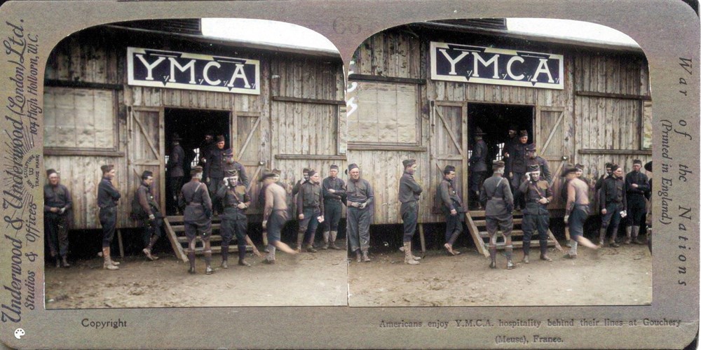 Americans enjoy Y.M.C.A. hospitality behind their lines at Gouchery (Meuse), France
