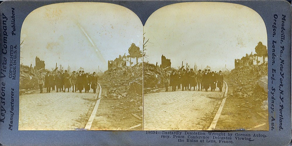 Dastardly Desolation Wrought by German Autocracy. Peace Conference Delegates Viewing the ruins at Lens, France