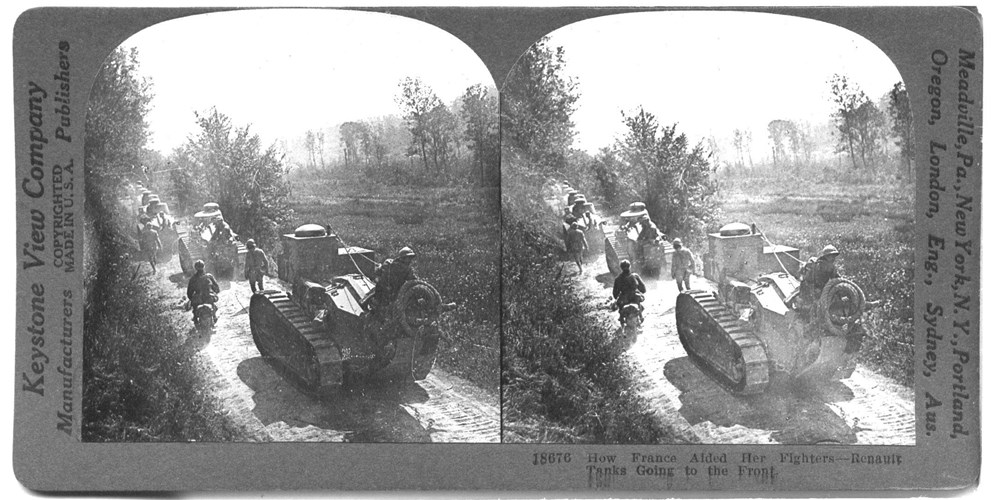 Image Id: 1049 Contributor: The Jordan/Ference Collection Theatre: Western Front Subject: Behind the Lines Location: France Regiment: Unknown Service Arm: Tanks/Armoured Cars Battle: Unknown Date: Unknown Combatants: French Publisher: Keystone View Co Source: American Directory: 18600-18699