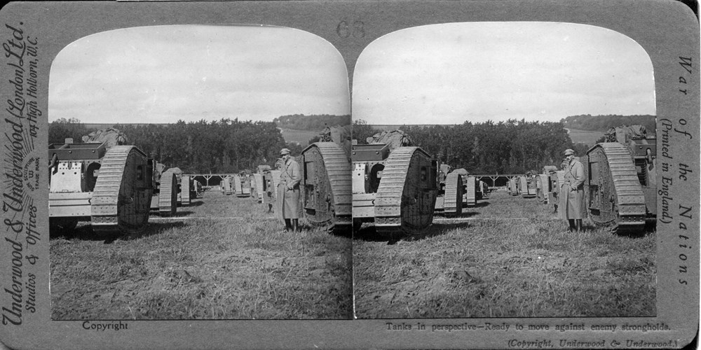 Image Id: 105 Contributor: The Jordan/Ference Collection Theatre: Western Front Subject: Behind the Lines Location: France Regiment: Unknown Service Arm: Tanks/Armoured Cars Battle: Unknown Date: Unknown Combatants: British Publisher: Underwood & Underwood Source: British Directory: WOTNB