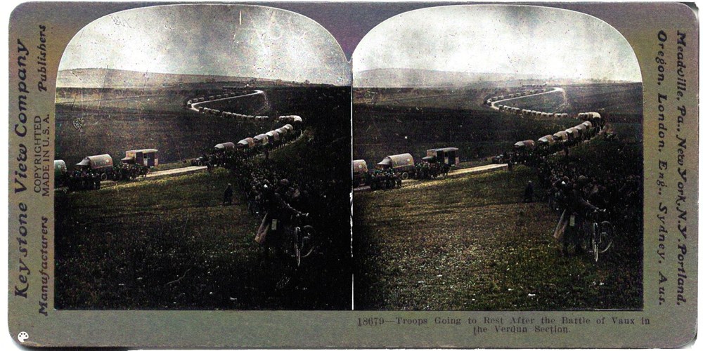 Image Id: 1052 Contributor: The Jordan/Ference Collection Theatre: Western Front Subject: Behind the Lines Location: near Verdun, France Regiment: Unknown Service Arm: Infantry Battle: Battle of Vaux Date: 1916 Combatants: Unknown Publisher: Keystone View Co Source: American Directory: 18600-18699