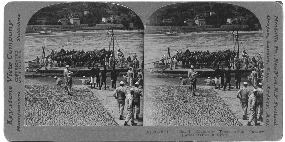 British Royal Engineers Transporting Cavalry Horses Across a River of France