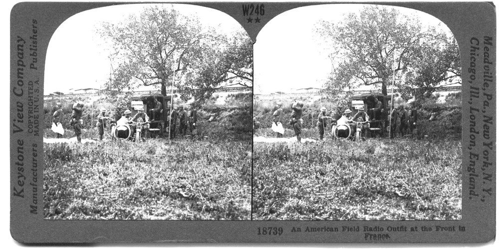 Image Id: 1087 Contributor: The Jordan/Ference Collection Theatre: Western Front Subject: Behind the Lines Location: France Regiment: Field Radio Unit Service Arm: Unknown Battle: Unknown Date: Unknown Combatants: American Publisher: Keystone View Co Source: American Directory: 18700-18799