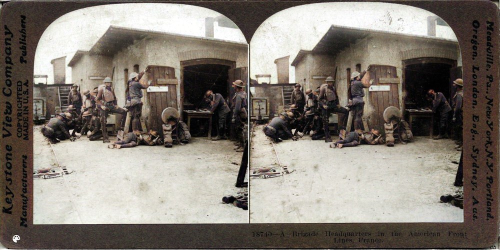 Image Id: 1088 Contributor: The Jordan/Ference Collection Theatre: Western Front Subject: Behind the Lines Location: France Regiment: Brigade HQ Service Arm: Unknown Battle: Unknown Date: Unknown Combatants: American Publisher: Keystone View Co Source: American Directory: 18700-18799