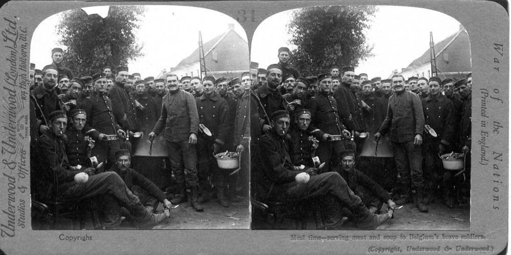 Meal time--serving meat and soup to Belgium's brave soldiers