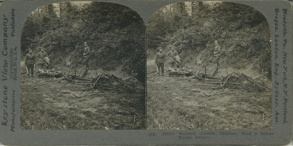 Image Id: 1107 Contributor: The Jordan/Ference Collection Theatre: Western Front Subject: Aircraft Location: Bard a Belone Woods, France Regiment: Unknown Service Arm: Air Force Battle: Unknown Date: Unknown Combatants: American Publisher: Keystone View Co Source: American Directory: 18700-18799