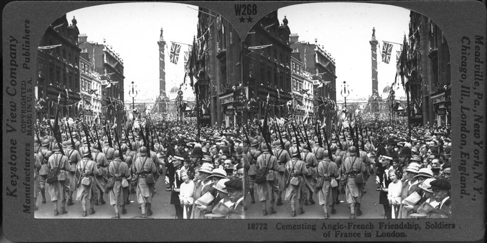 Image Id: 1120 Contributor: The Jordan/Ference Collection Theatre: Post-War Subject: Parades Location: London Regiment: Unknown Service Arm: Unknown Battle: Unknown Date: Unknown Combatants: French Publisher: Keystone View Co Source: American Directory: 18700-18799