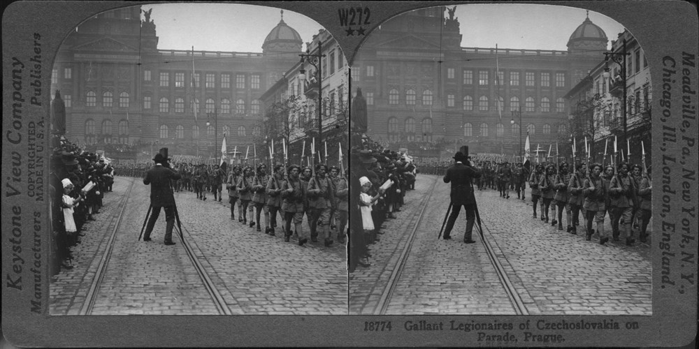 Image Id: 1122 Contributor: The Jordan/Ference Collection Theatre: Post-War Subject: Parades Location: Prague, Czechoslovakia Regiment: Unknown Service Arm: Unknown Battle: Unknown Date: Unknown Combatants: Czechoslovakian Publisher: Keystone View Co Source: American Directory: 18700-18799