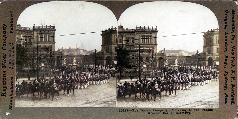 Not from a WWI set, but related to 10331 & 10332Image Id: 1155 Contributor: The Jordan/Ference Collection Theatre: Pre-War Subject: Parades Location: Berlin, Germany Regiment: Unknown Service Arm: Cavalry Battle: Unknown Date: Unknown Combatants: German Publisher: Keystone View Co Source: American Directory: 00001-17999