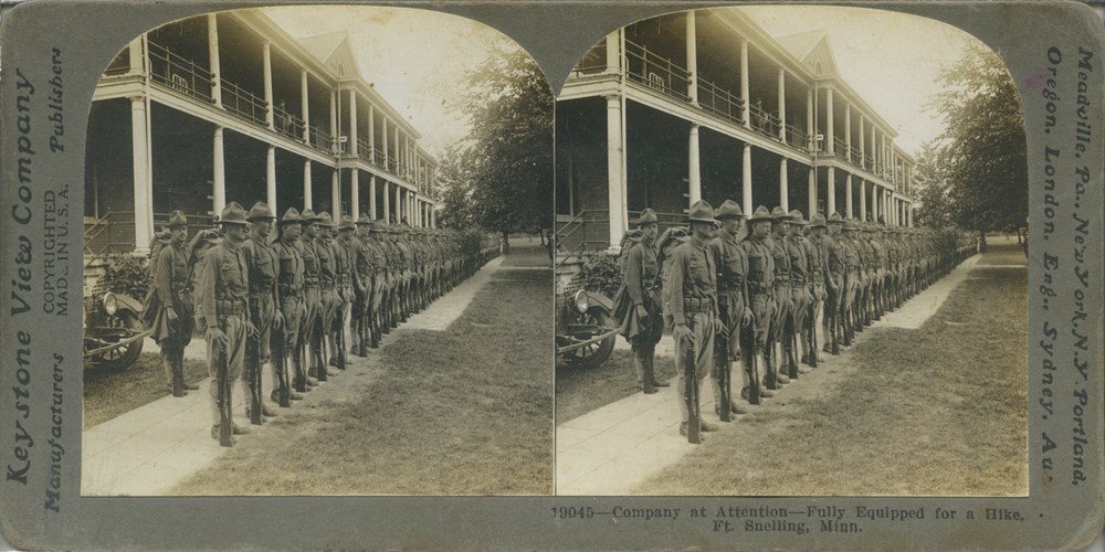 Image Id: 1229 Contributor: The Jordan/Ference Collection Theatre: Home Front Subject: Training Location: Fort Snelling, Minnesota, USA Regiment: Unknown Service Arm: Infantry Battle: Unknown Date: Unknown Combatants: Unknown Publisher: Keystone View Co Source: American Directory: 19000-19099