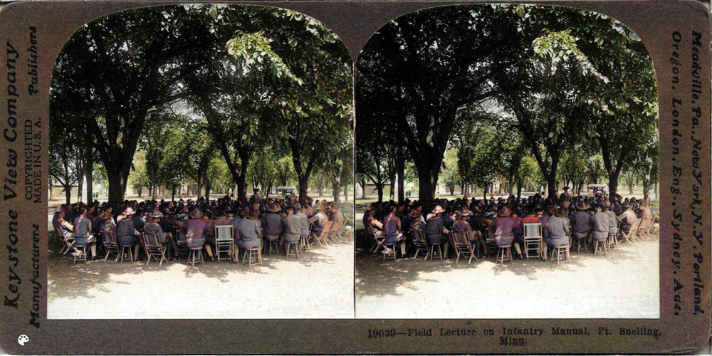 Image Id: 1264 Contributor: The Jordan/Ference Collection Theatre: Home Front Subject: Training Location: Fort Snelling, Minnesota, USA Regiment: Unknown Service Arm: Infantry Battle: Unknown Date: Unknown Combatants: Unknown Publisher: Keystone View Co Source: American Directory: 19000-19099