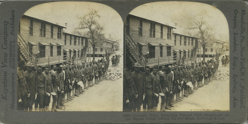 Colored Boys Awaiting Dinner Call--Engineers of the Signal Corps Lining Up for Mess, National Army