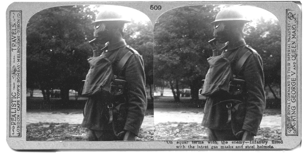 On equal terms with the enemy - Infantry fitted with the latest gas masks and steel helmets
