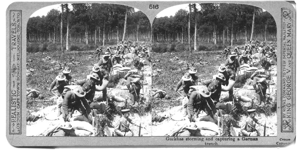 Image Id: 1311 Contributor: The Jordan/Ference Collection Theatre: Western Front Subject: The Front Line Location: France Regiment: Gurkhas Service Arm: Infantry Battle: Unknown Date: 1915 Combatants: Indian Publisher: Realistic Travels Source: British Directory: Set of 600 501-600