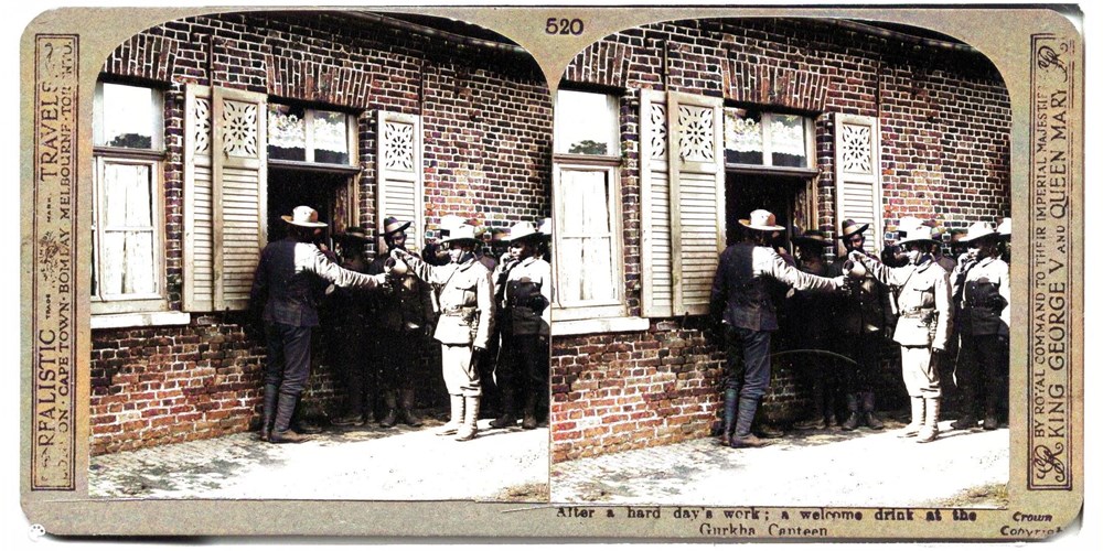 After a hard day's work; a welcome drink at the Gurkha Canteen