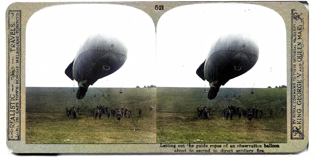 Image Id: 1316 Contributor: The Jordan/Ference Collection Theatre: Western Front Subject: Balloons Location: Belgium/France Regiment: Caquot Type R Kite Balloon Service Arm: Artillery Spotters Battle: Unknown Date: Unknown Combatants: British Publisher: Realistic Travels Source: British Directory: Set of 600 501-600