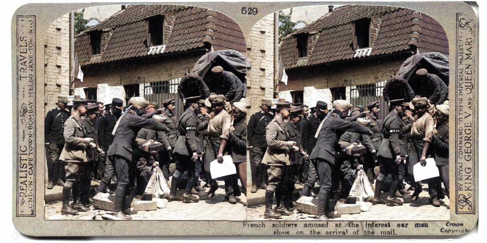Image Id: 1324 Contributor: The Jordan/Ference Collection Theatre: Western Front Subject: Behind the Lines Location: France Regiment: Unknown Service Arm: Infantry Battle: Unknown Date: 1915 Combatants: French/Indian Publisher: Realistic Travels Source: British Directory: Set of 600 501-600