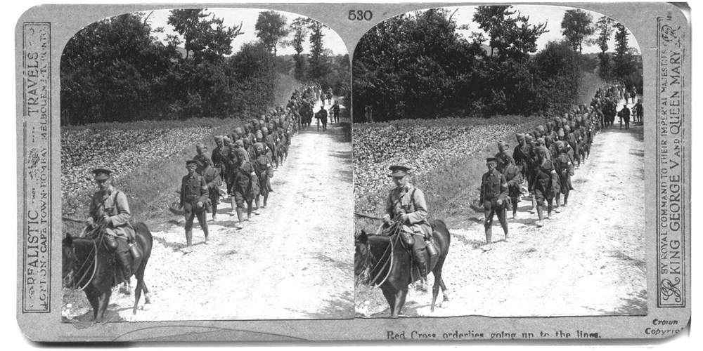 Red Cross orderlies going up to the lines