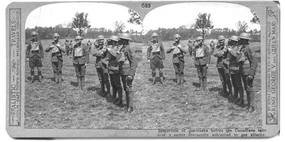 Inspection of gas-masks before the Canadians take over a sector frequently subjected to gas attacks