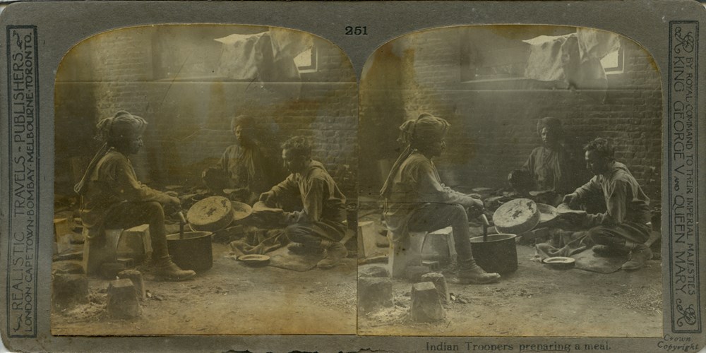 Image Id: 1342 Contributor: The Jordan/Ference Collection Theatre: Western Front Subject: Behind the Lines Location: Estree Blanche,France Regiment: Unknown Service Arm: Cavalry Battle: Unknown Date: 25th July 1915 Combatants: Indian Publisher: Realistic Travels Source: British Directory: Set of 600 501-600