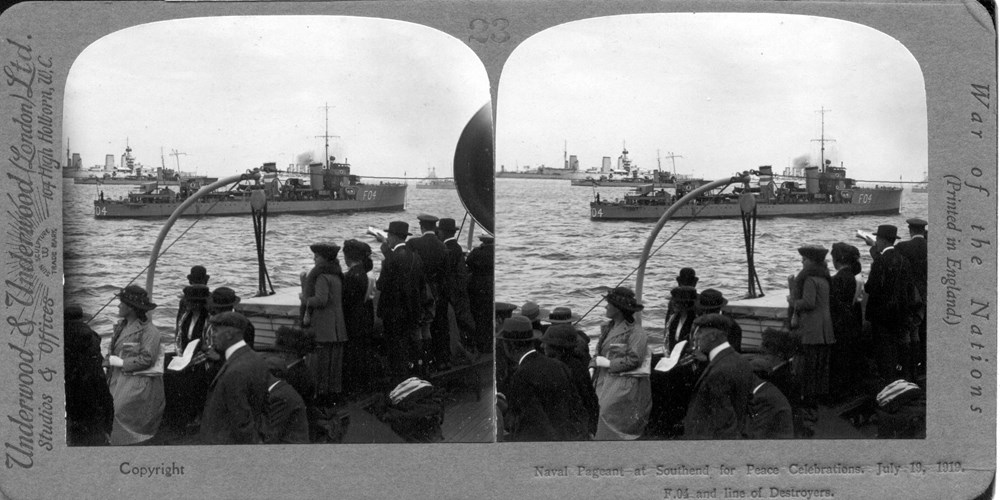 Image Id: 135 Contributor: The Jordan/Ference Collection Theatre: Post-War Subject: Surface Vessels Location: Southend on Sea Regiment: Unknown Service Arm: Navy Battle: Unknown Date: July 1919 Combatants: British Publisher: Underwood & Underwood Source: British Directory: WOTNB