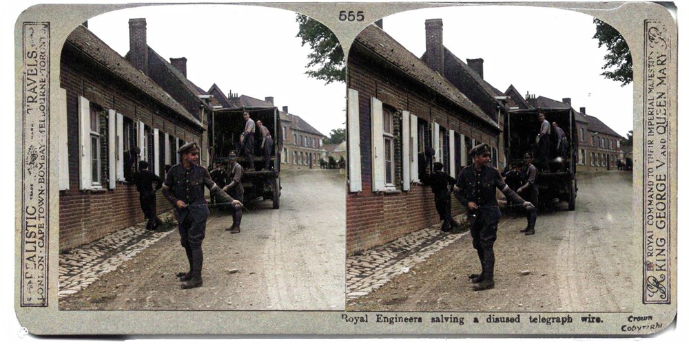 Image Id: 1350 Contributor: The Jordan/Ference Collection Theatre: Western Front Subject: Behind the Lines Location: Belgium/France Regiment: Royal Engineers Service Arm: Engineers Battle: Unknown Date: Unknown Combatants: British Publisher: Realistic Travels Source: British Directory: Set of 600 501-600