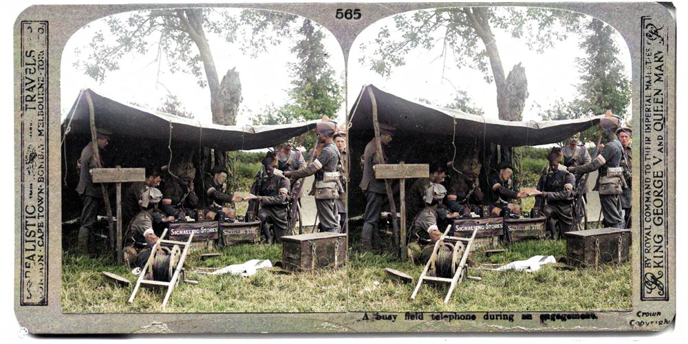 Image Id: 1360 Contributor: The Jordan/Ference Collection Theatre: Western Front Subject: Behind the Lines Location: St Floris,France Regiment: Dehra Dun Bde. Signals Service Arm: Engineers Battle: Unknown Date: 1915 Combatants: British/Indian Publisher: Realistic Travels Source: British Directory: Set of 600 501-600