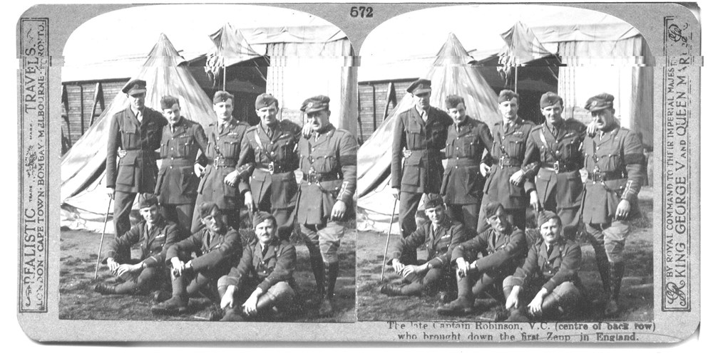 The late Captain Robinson, V.C. (centre of back row) who brought down the first Zepp in England