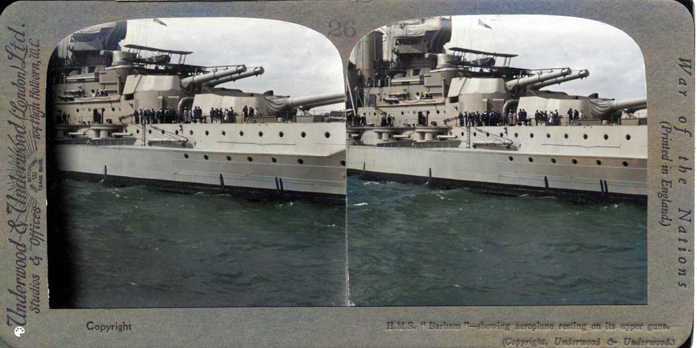 H.M.S. "Barham"--showing aeroplane resting on its upper guns
