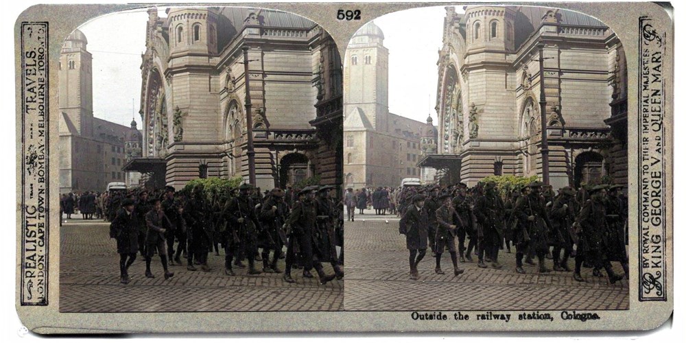 Image Id: 1387 Contributor: The Jordan/Ference Collection Theatre: Post-War Subject: Army of Occupation Location: Cologne,Germany Regiment: Unknown Service Arm: Infantry Battle: Unknown Date: 1919 Combatants: British Publisher: Realistic Travels Source: British Directory: Set of 600 501-600