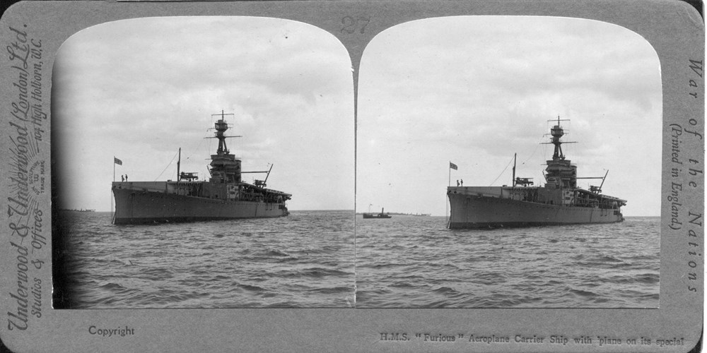H.M.S. "Furious" Aeroplane Carrier with 'plane on its special