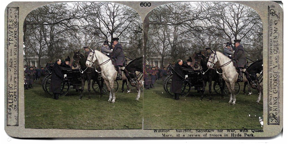 Winston Churchill, Secretary for War, with Queen Mary, at a review of troops in Hyde Park