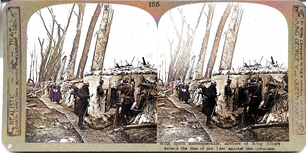 Image Id: 1401 Contributor: The Jordan/Ference Collection Theatre: Western Front Subject: The Front Line Location: Yser, Belgium Regiment: Unknown Service Arm: Infantry Battle: Unknown Date: Unknown Combatants: Belgian Publisher: Realistic Travels Source: British Directory: Set of 600 101-200