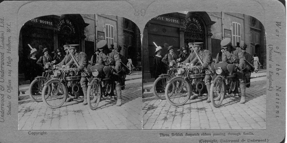 Three British despatch riders passing through Senlis