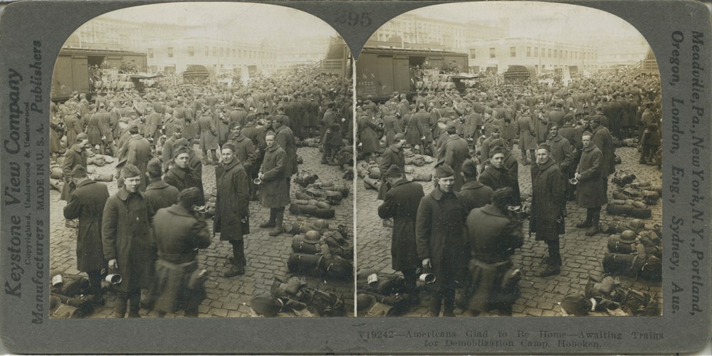 Image Id: 1427 Contributor: The Jordan/Ference Collection Theatre: Post-War Subject: Homecoming Location: Hoboken, USA Regiment: Unknown Service Arm: Unknown Battle: Unknown Date: Unknown Combatants: American Publisher: Keystone View Co Source: American Directory: 19200-19299