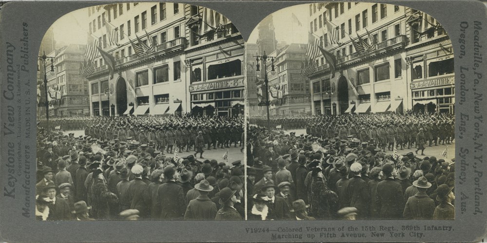 Image Id: 1429 Contributor: The Jordan/Ference Collection Theatre: Post-War Subject: Parades Location: New York, USA Regiment: 15th Regiment, 369th Infantry Service Arm: Infantry Battle: Unknown Date: Unknown Combatants: American Publisher: Keystone View Co Source: American Directory: 19200-19299