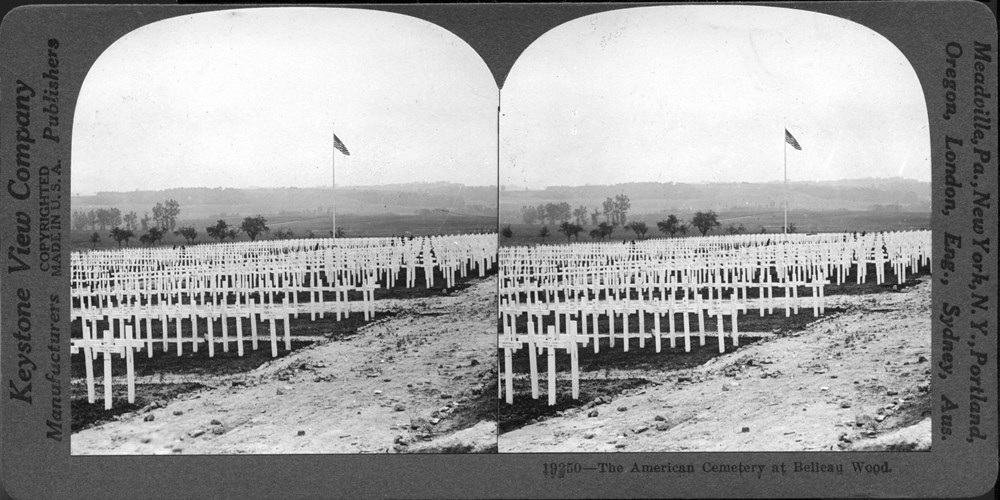 Image Id: 1432 Contributor: The Jordan/Ference Collection Theatre: Western Front Subject: Cemeteries & Monuments Location: Belleau Wood, France Regiment: Unknown Service Arm: Unknown Battle: Unknown Date: Unknown Combatants: Unknown Publisher: Keystone View Co Source: American Directory: 19200-19299