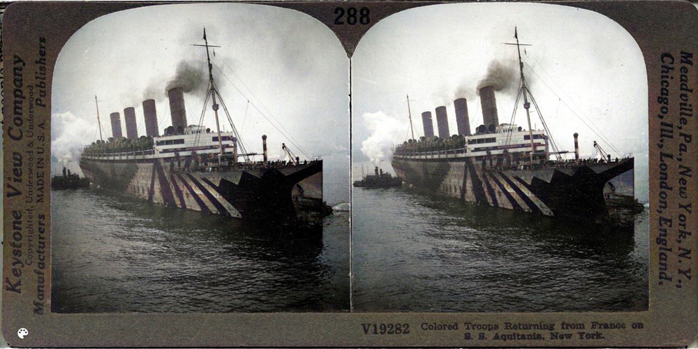 Colored Troops Returning from France on Camouflaged S.S. Aquitania, New York