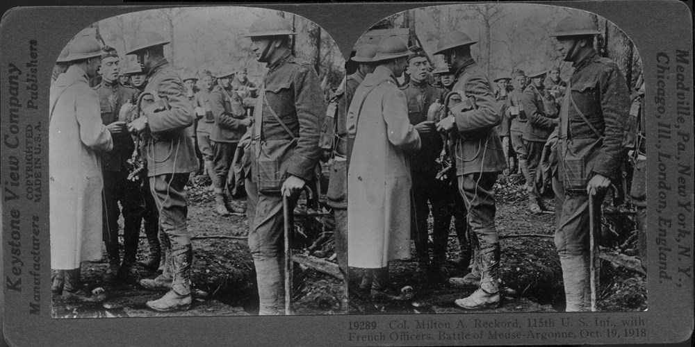 Col. Milton A. Reckord, 115th U.S. Inf., With French Officers, Battle of Meuse-Argonne, Oct.19, 1918