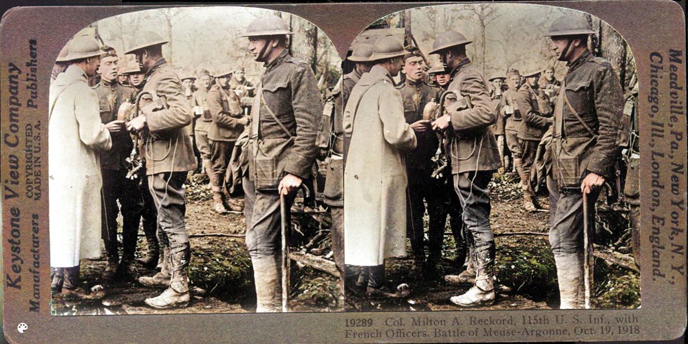 Col. Milton A. Reckord, 115th U.S. Inf., With French Officers, Battle of Meuse-Argonne, Oct.19, 1918