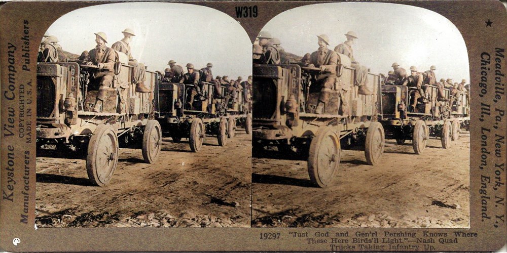 "Just God and Gen'rl Pershing Knows Where These Here Birds'll"--Nash Quad Trucks Taking Infantry Up