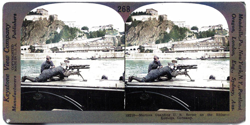 Image Id: 1488 Contributor: The Jordan/Ference Collection Theatre: Post-War Subject: Army of Occupation Location: Koblenz, Germany Regiment: Unknown Service Arm: Marines Battle: Unknown Date: Unknown Combatants: American Publisher: Keystone View Co Source: American Directory: 19200-19299