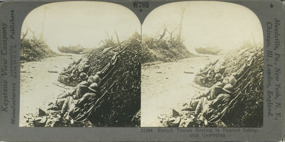 Image Id: 1499 Contributor: The Jordan/Ference Collection Theatre: Western Front Subject: The Front Line Location: Courcelles, France Regiment: Unknown Service Arm: Infantry Battle: Unknown Date: Unknown Combatants: French Publisher: Keystone View Co Source: American Directory: 20000 Plus